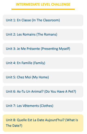 Click on Unit 8: Quelle Est La Date Aujourd’hui? (What is the Date?) and then Lesson 1 to learn the twelve months in French.