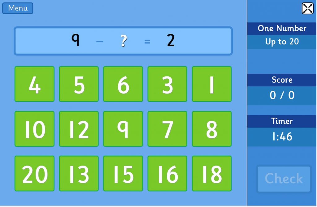 Spend 10 minutes warming up your subtraction skills with the game to the left. Choose up to 20 to start with, working your way up to 100. Can you beat your own score?