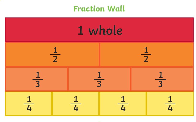 This is a fraction wall. It will be really useful to refer back to today. I explain what it is in my video, so watch that first. Then click, and join in, with the second video. Today’s lesson, with the videos included, could take around 45minutes.