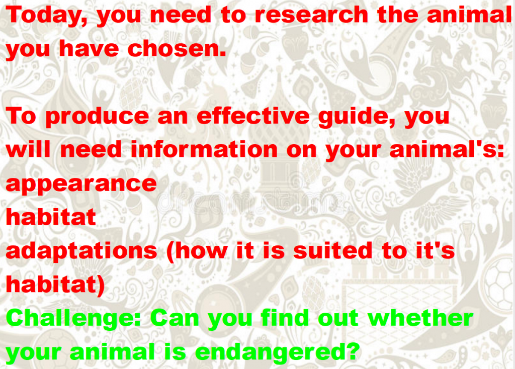 Good luck!! Remember to share a photo of your work using twitter or the Year 5 upload link at the top of the page.