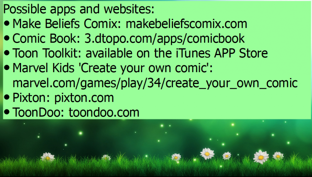 Now, using the model below to give you an idea of how to start, create a comic strip illustrating this. There is an image below of some apps that you may find useful for this activity.
